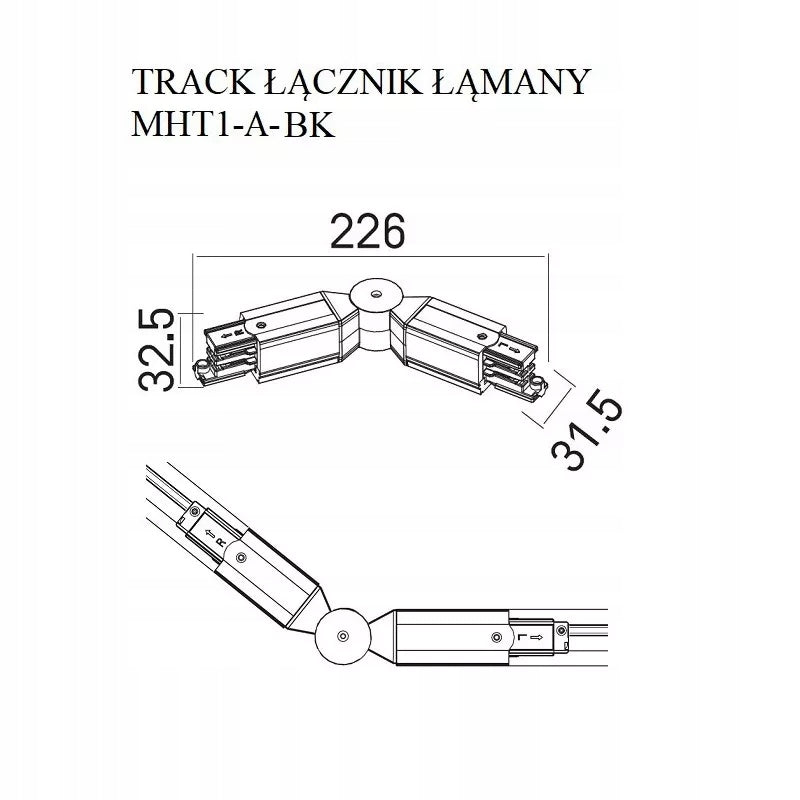 Verbinder für LED-3-Phasen-Schienen Maxlight. Der Verbinder ist für den Anschluss von LED-Schienen vorgesehen. Länge 31,5 mm. Aus Aluminium gefertigt und schwarz lackiert.