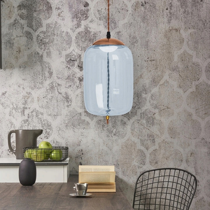 Die Lampe besteht aus Glas und Metall – die Haube besteht größtenteils aus Glas und der Rand ist aus Metall. Die Lampe verfügt über eine integrierte 5-W-LED-Quelle.