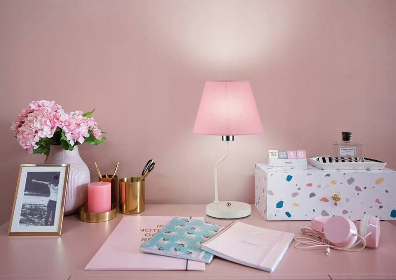 Klassische Tischlampe aus weißem Metall mit Haube. Das Produkt ist für Wohnzimmer, Esszimmer, Küche, Schlafzimmer, Flur, Arbeitszimmer, Kinderzimmer bestimmt. Es kann auch ein tolles Dekorationselement für öffentliche Räume wie Schönheitssalons, Wellnessräume, Cafés usw. sein.