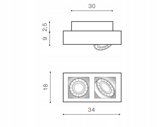 - Lempučių skaičius: 2 x GU10/ES111 max 16W LED;