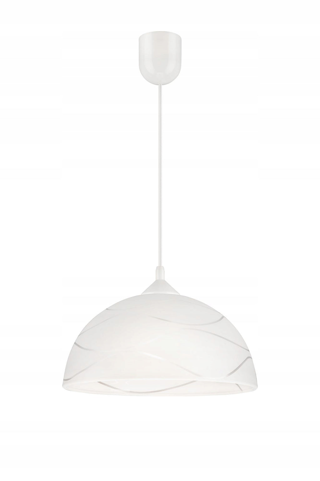 Prekės aprašymas: Modernus pakabinamas šviestuvas su stiklo gaubtu, baltos spalvos